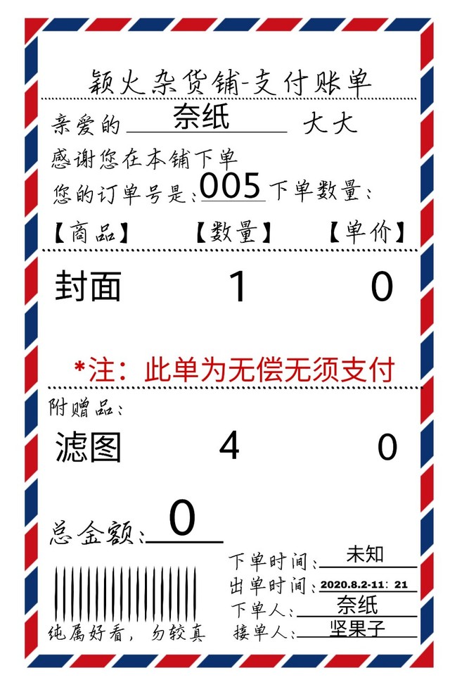 果子酱(店长)此单为无偿,无须支付