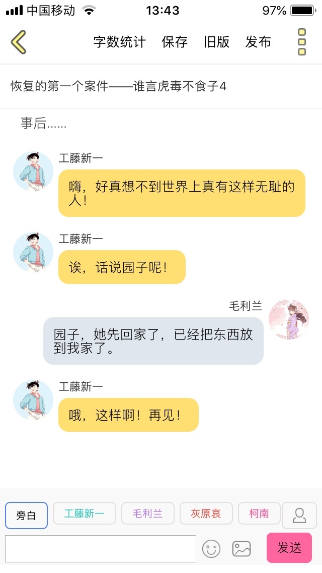 工藤新一那我帮你把和叶约到餐厅吧。