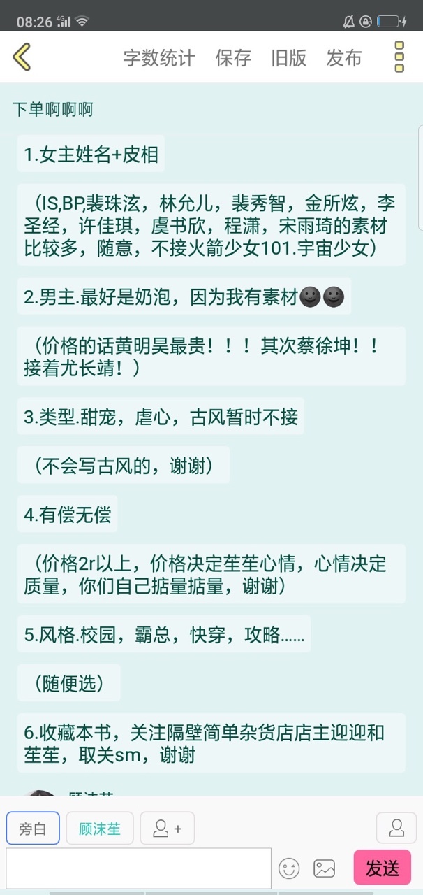 苼苼定制文下单格式及文赏