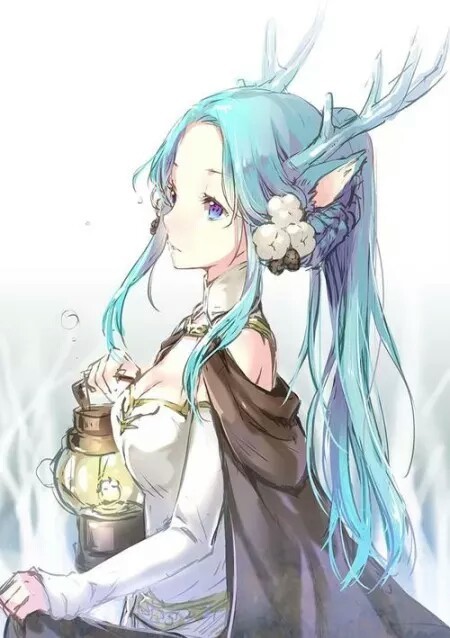 她是一个很可爱的小鹿女呢头发是粉嫩的