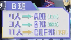 F班的练习生大幅度上升,应证了努力就会有回报这句话。更有黑马李权哲直跨三级到达B班
