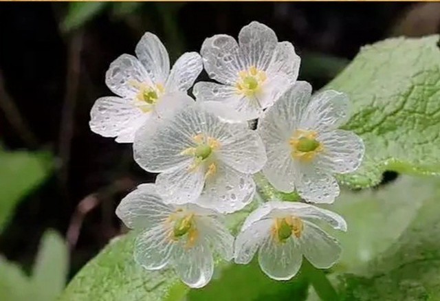 山荷叶的花瓣淋了雨后,花瓣瞬间变透明