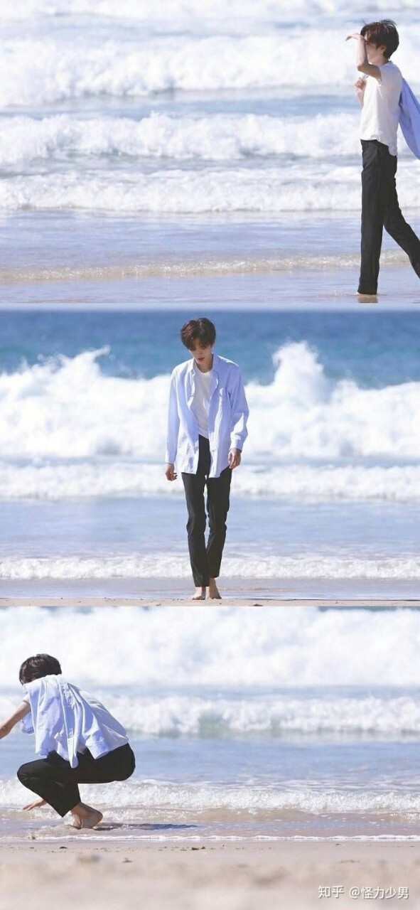 朱正廷面向大海,背对着他们