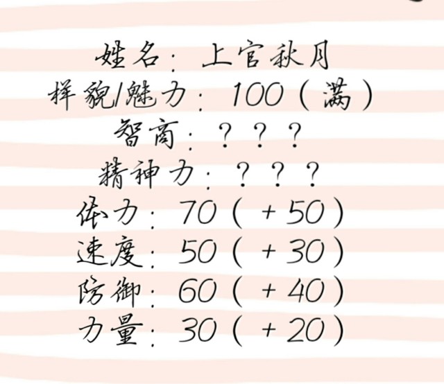 上官秋月体能和速度,精神力?