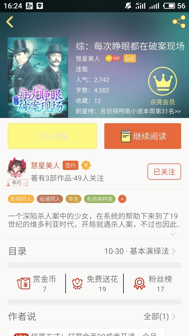 作者歪歪最近大大新开了一篇文,叫做《综:每次睁眼都在破案现场》,是悬疑推理类的文。
