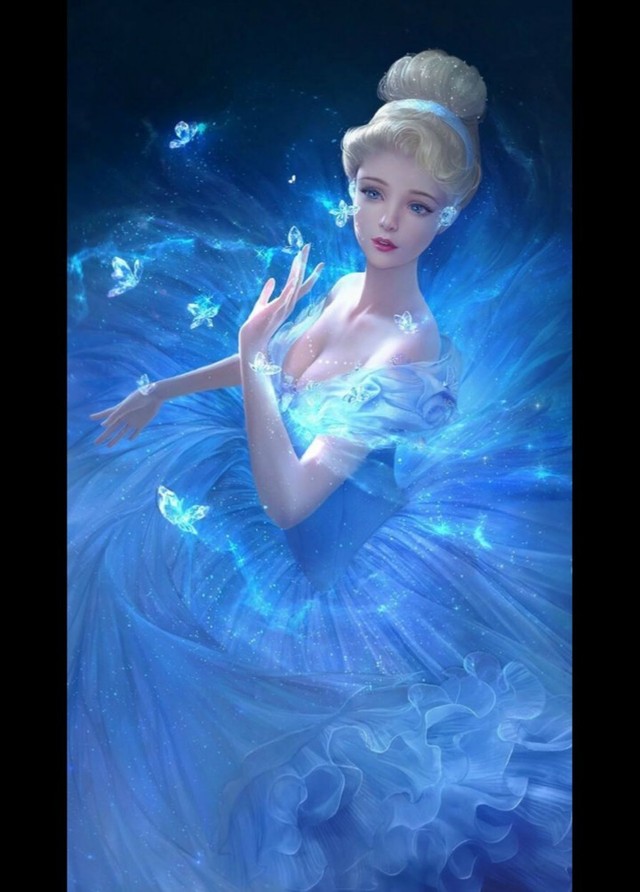 慕冷月一袭淡蓝色的灰姑娘式长裙,双眸中是蓝色的美瞳,微黄的头发被发带束起来,颈上是银白的蓝宝石项链。