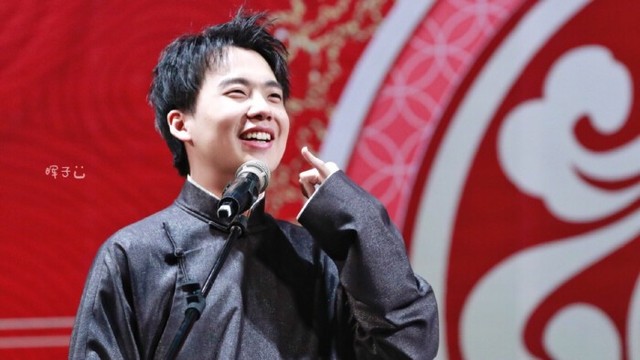 不知不觉开箱表演已经要结束了,但是观众们的激情依旧没有被表演快要结束而磨灭,过了一会,到了德云社的传统片场:所有的演员都会到舞台上然后占成好几排,而郭德纲于谦等人会站在最前面,随后,郭德纲拉这一个身形微瘦的男人对着底下的观众说道:“这是我们德云社一队的演员,穿着