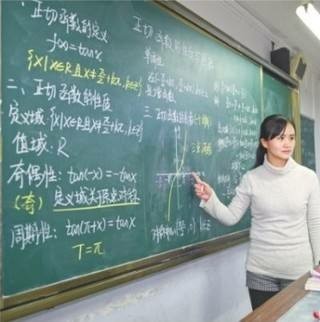 黑板上老师拿着粉笔奋笔疾书。