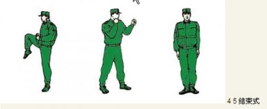 君子颜七、掀腿压颈 动作要领:身体向左后转180度,左抄抱,右脚向左前踢腿(与小腿同高),同时身体右转,左手上挑与头同高,掌心向后,右手下压后摆,掌心向后;右脚踢腿后在左脚后落步,并用力下踏,同时左脚高前上步,左手臂左下格挡,右掌置于腰际,随即右掌向前插击,掌心向下与喉部同高(不收回)左手变拳置于下颌,两眼目视前方。