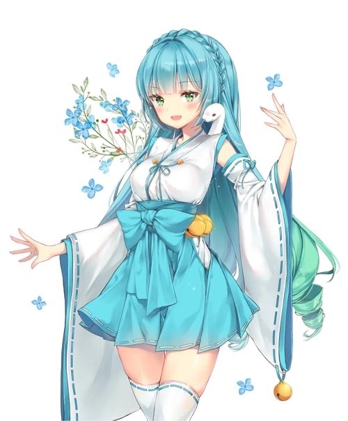 蓝绿色发的少女一改往日的萝莉装,换上一条可爱的和服,却透露着几分成熟与迷人