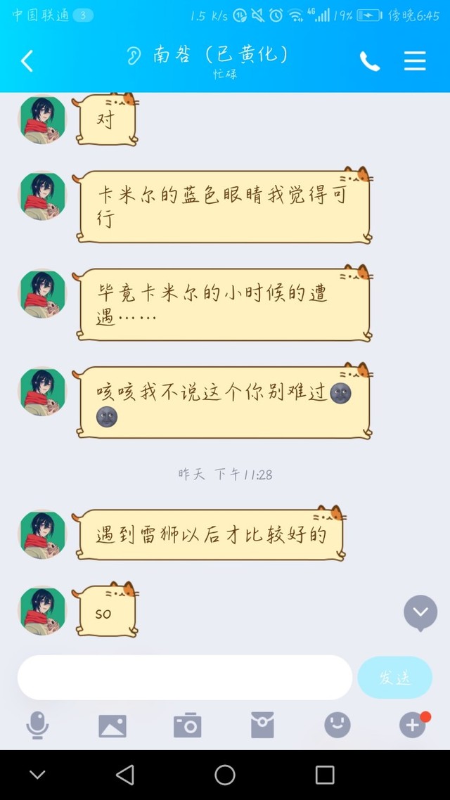 卡米尔的小手拉了拉雷狮胸口的衣服