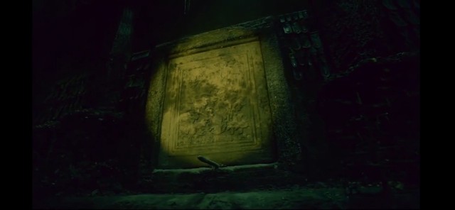 张起灵发现了一个石门,他用手电照着那个石门,正想着怎么把它弄开。