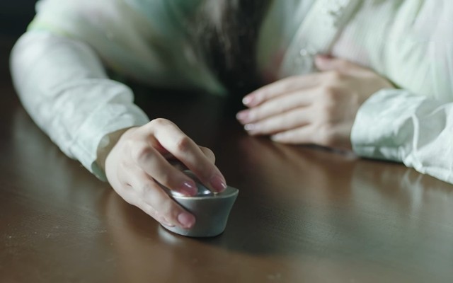 初夏(捂着肚子走到柜台)“老板娘,那个茅厕在哪儿啊?”