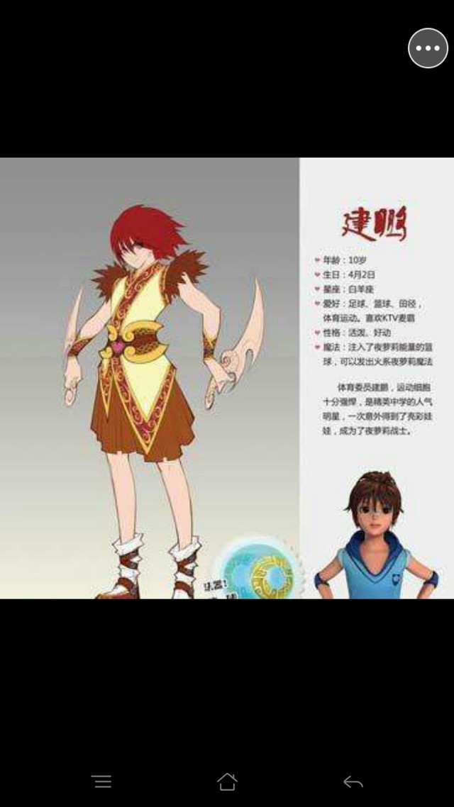 建鹏十分喜欢打篮球,有点莽撞后来因机缘巧合和亮彩相互选中缔结契约,武器为篮球