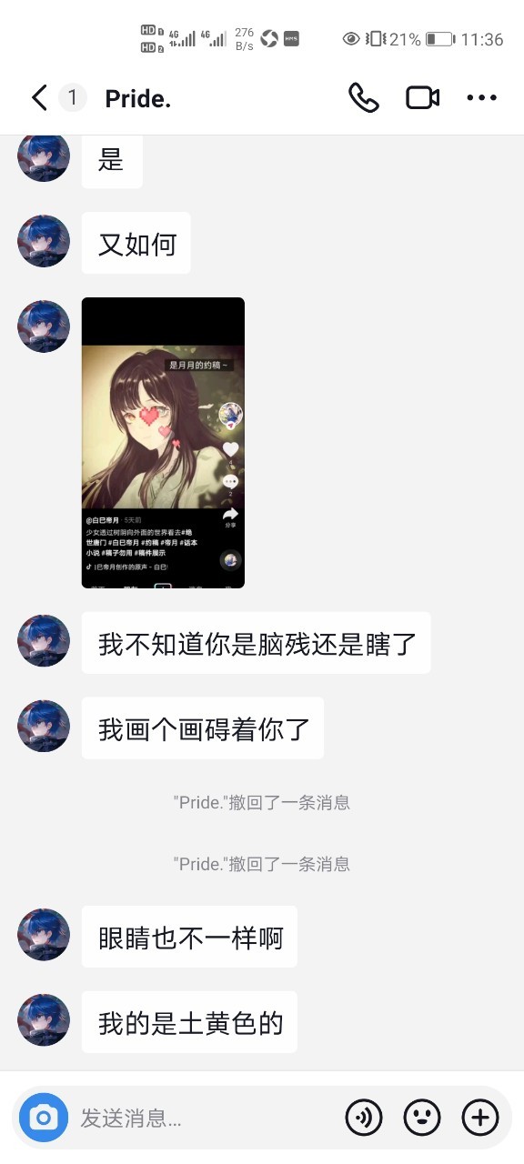 后来他又说他真的不知道,可是他都看过我的小说了怎么不知道。而且我在我bilibili关于笑红尘的视频上也放过关于月月的图片。