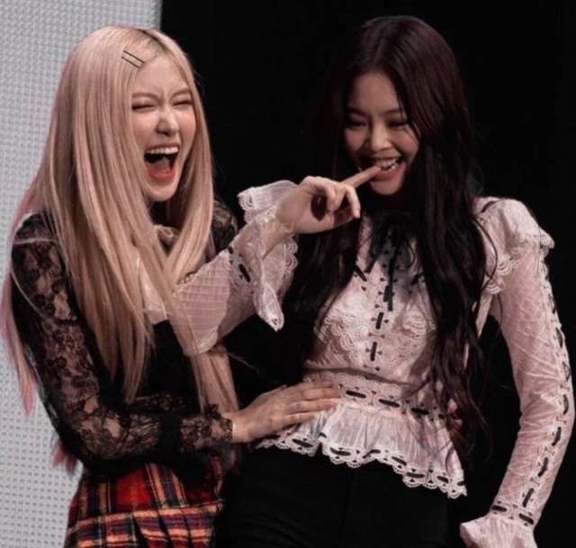 朴彩英和jennie开心地聊着,时不时还传出几大笑。