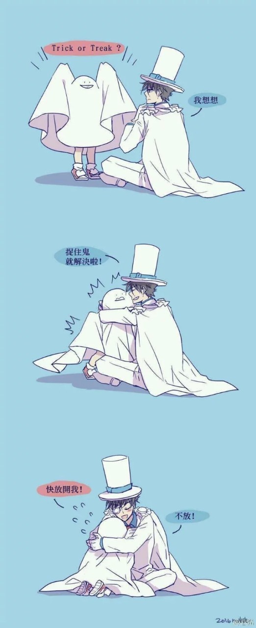 注:曾经作者也对夜白装过晕,在快斗“柔和的目光”下,不要脸的赖在夜白的怀里好久,于是就…