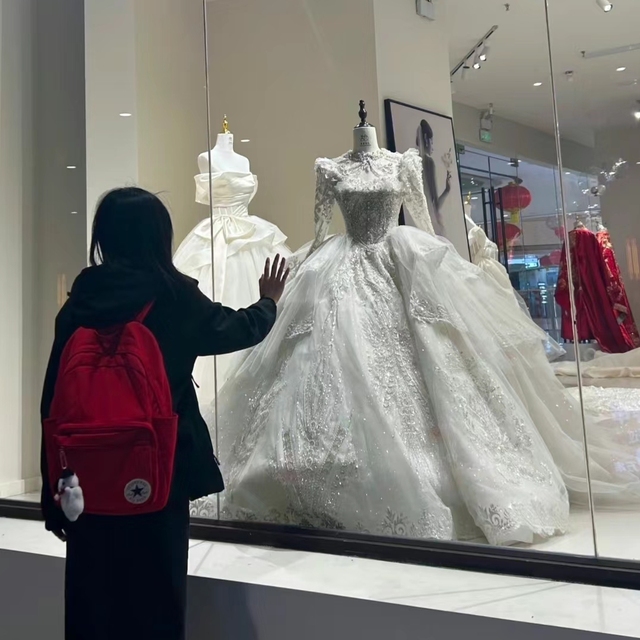 俩人继续走着,路过婚纱店门口时,亦韵站了很久,对着橱窗里的婚纱望了很久,无数次幻想以后。