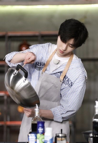 其他人还在洗澡换衣服,蔡徐坤先过来准备做菜,结果连油锅也不会开。