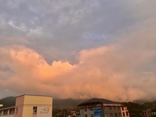 “今天家乡的夕阳是粉红色的.”