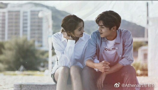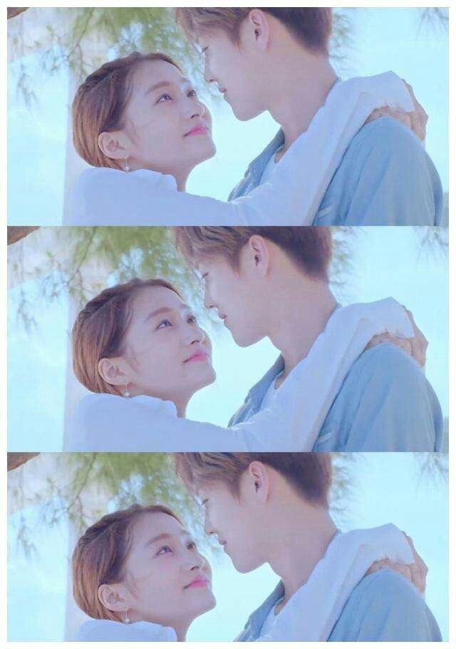 晓彤伸伸懒腰,鹿晗温柔地给晓彤套上白色衣服(情侣装哦)吻了下晓彤额头