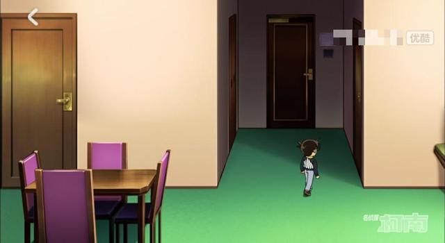 此时柯南在客厅里四处张望,一间上锁的房间引起他的注意
