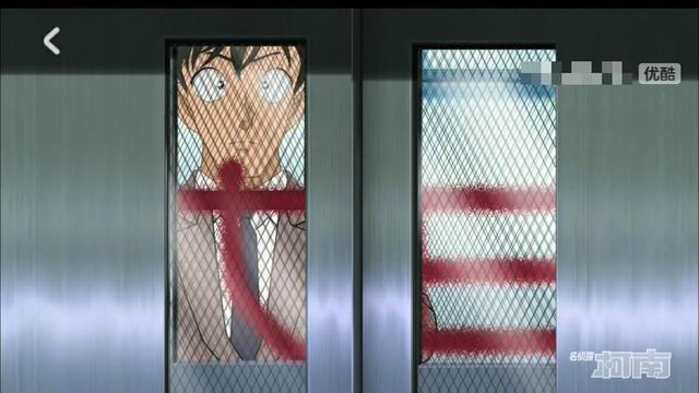 就在这时,柯南突然指着电梯的窗户喊道
