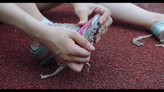 其他的一起比赛的女生就在嘲笑着她说:“鞋子都破了”
