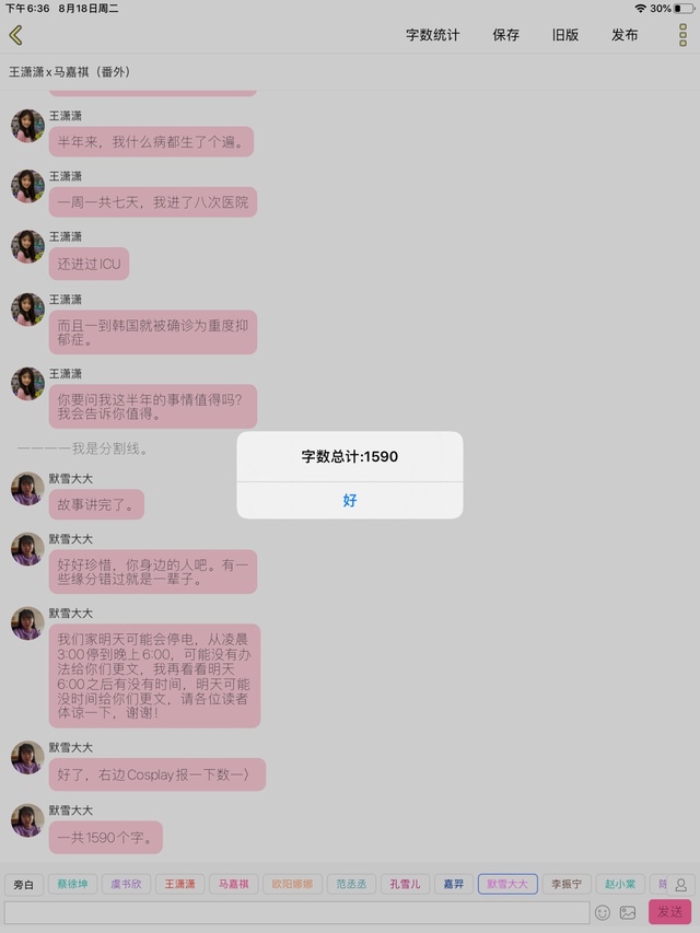 默雪大大一共1590个字。