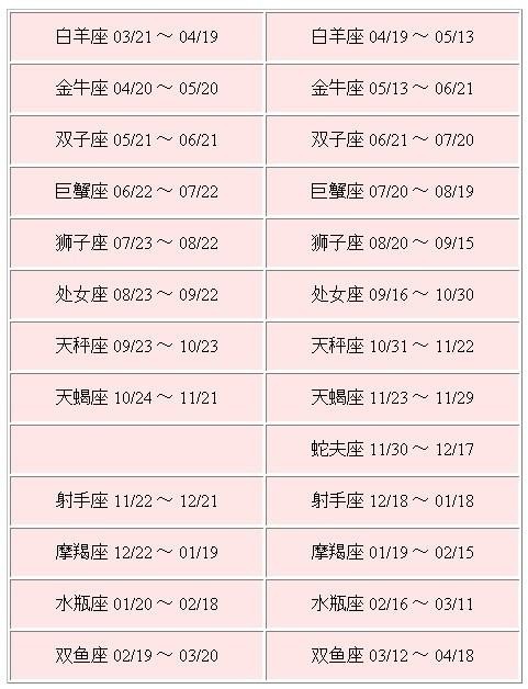 十三星座的生日日期如下: