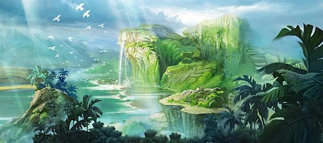 飞到小岛屿半空,辽望这小岛屿其实满大的,周围被焦石围绕。里面有小河,还有一个枫树林。