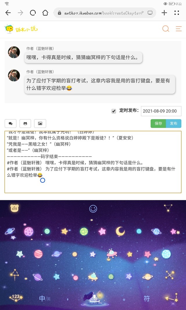 作者(蓝魅轩雅)为了应付下学期的盲打考试,这章内容我是用的盲打键盘,要是有什么错字欢迎检举😂