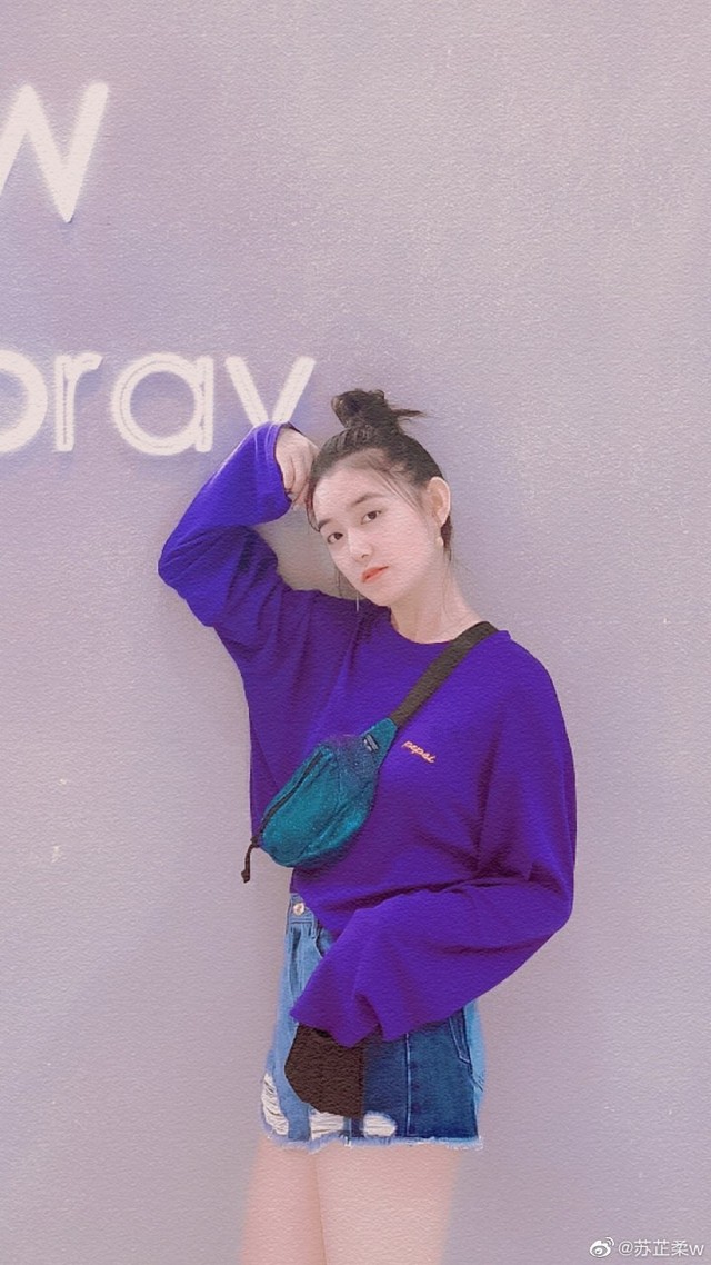 宋佳年一身紫衣,只有一条牛仔短裤,未过膝盖。