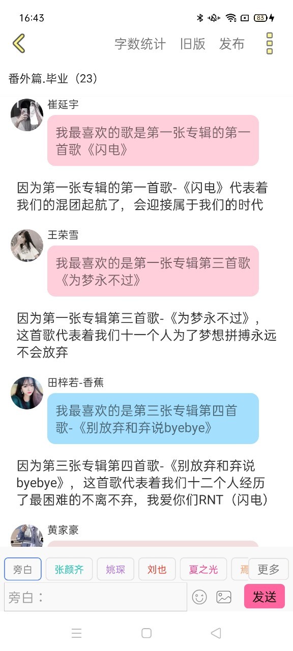 王荣雪大家好,我是RNT(闪电)的王荣雪,今天晚上可能是我最后一次喊RNT(闪电)了,我舍不得你们,前两天筱筱把行李都搬到原公司了,若子把她的行李打包了,可能我们不会再有可能了吧,这个团也没有之前那么吵了,我都有点不习惯了,RNT(闪电)的王荣雪再见