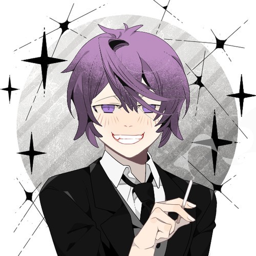 威廉穿着白色的衬衫,外面穿着黑色的西装,黑的的裤子,带着紫色的领结,也时带着黑的手套,穿黑色的皮鞋,有着紫色的头发,虹膜是紫色的。后期……