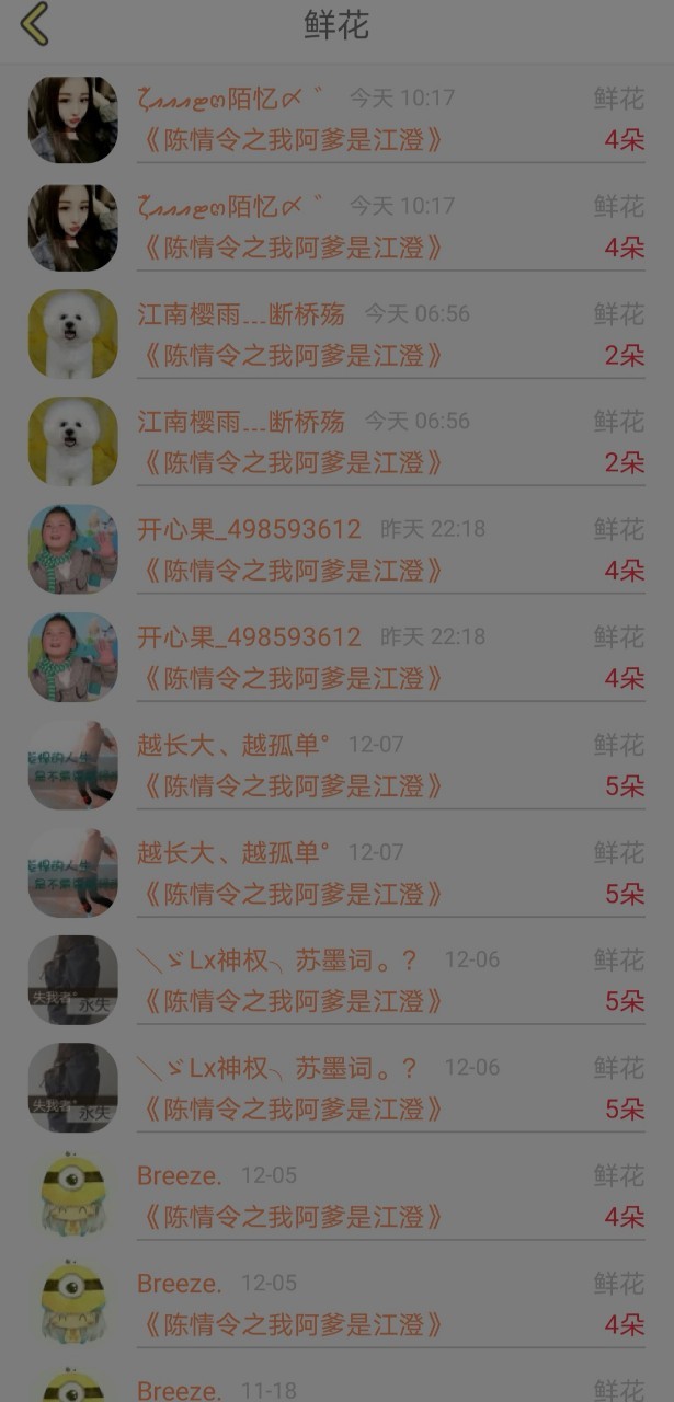 作者以下为送花的小天使们。