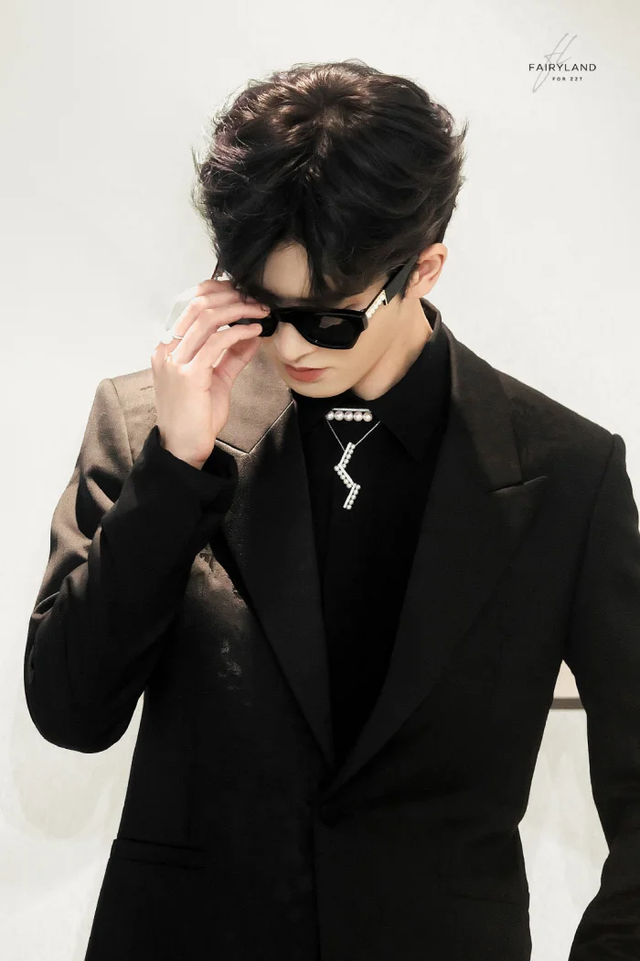 朱正廷身材高大,简单的白长衫与直筒裤都被穿出不凡气度。
