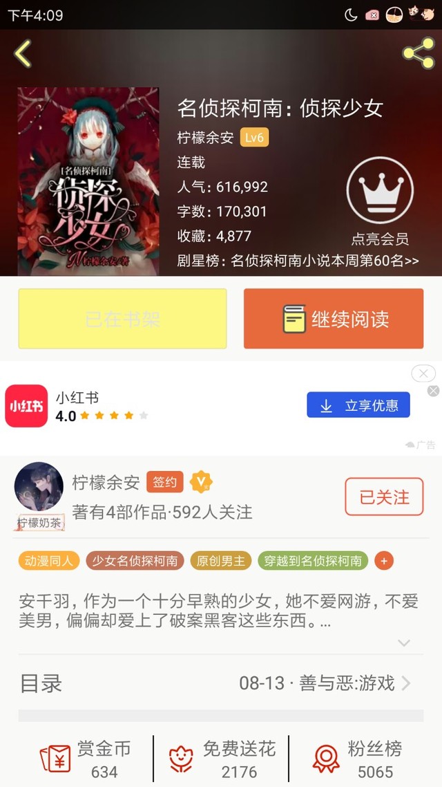 作者大大然后呢,而H穿越的小说叫名侦探柯南侦探少女