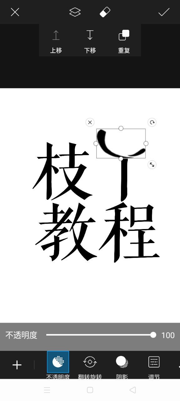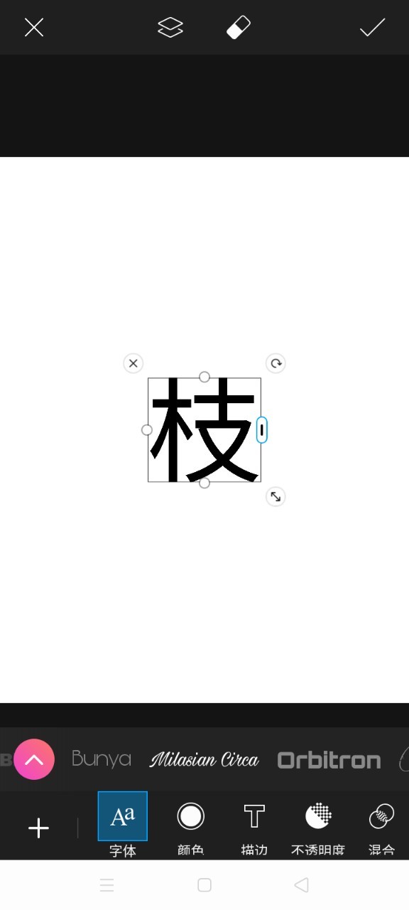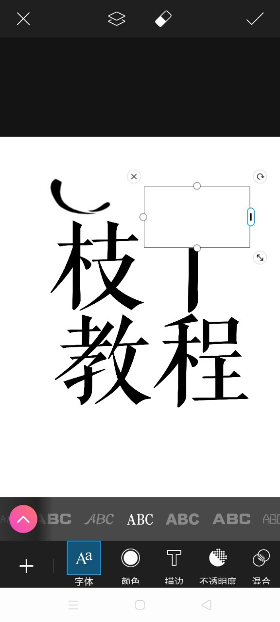 枝丫按照上述方法,打出文字,点击右上角√