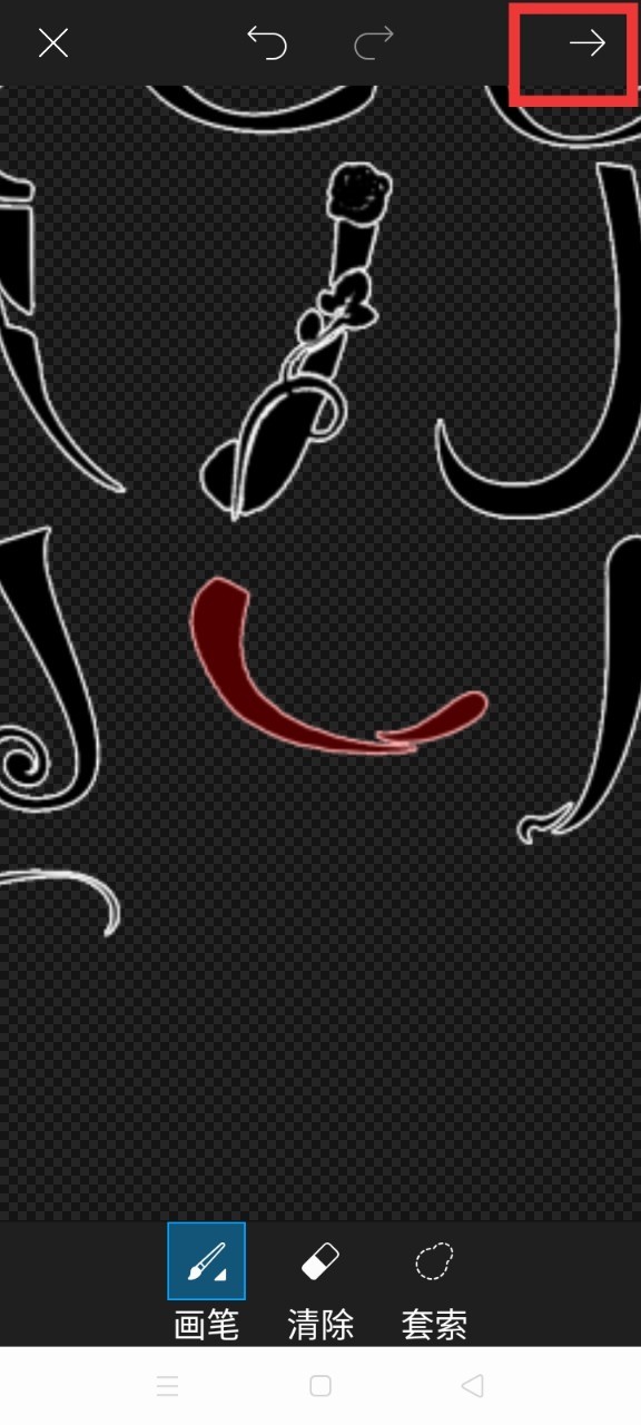 枝丫画出所需部分,再点击右上角→