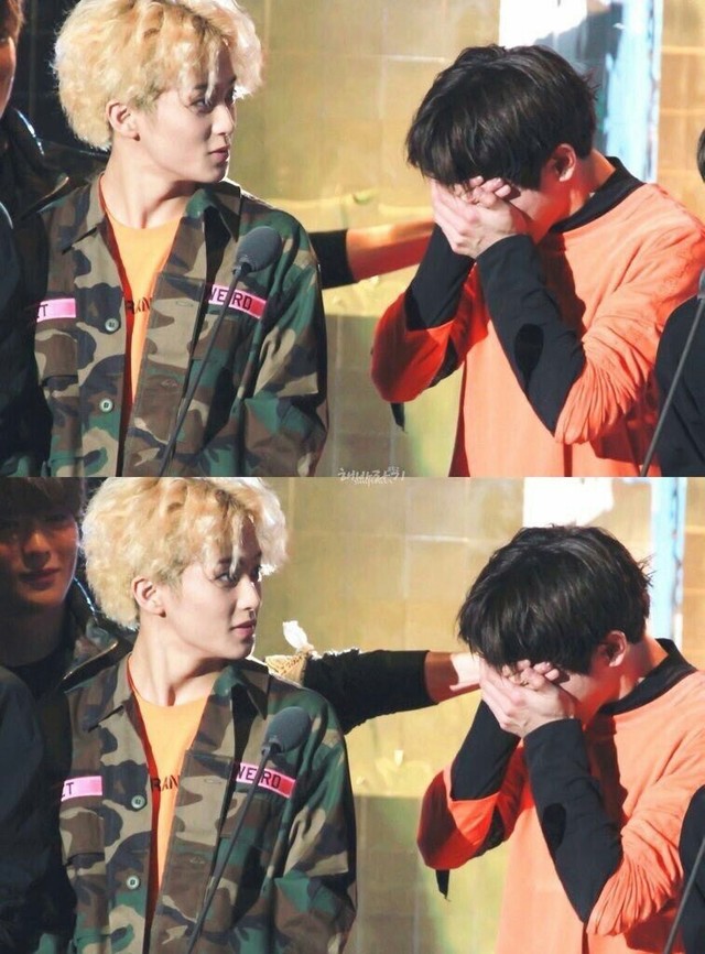 放在平时,李泰荣可能会摸摸他们的后脑勺,用老好人一般的语气答应下次给他们买零食,可今天他没有心情听两个活宝吵架,默默地躺在床上用被子盖着头,不知道在想些什么,一旁站着的李马克和罗渽民发觉不对劲,这才发现哥哥的异样。