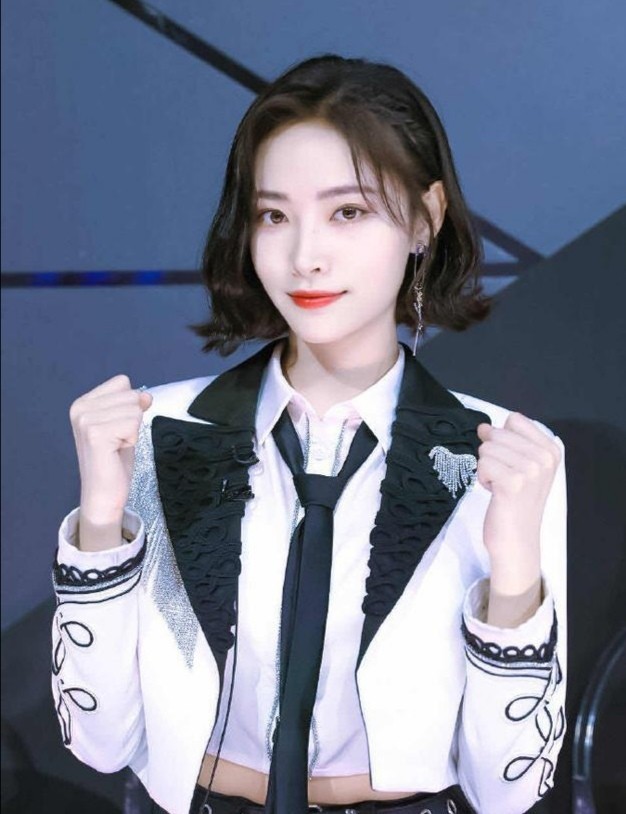 终于轮到许佳琪那组出场了,许佳琪穿着一身白色的小西装,又美又飒