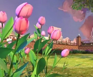 这里到处开满了五彩斑斓的花,有一个小小的喷泉。