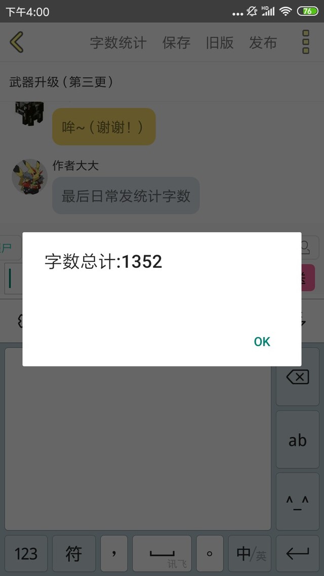 作者大大最后日常发统计字数