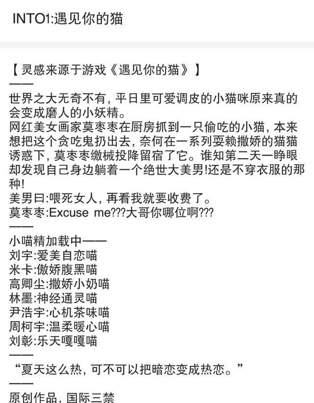 甜豆推新坑《INTO1:遇见你的猫》