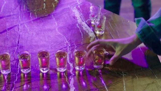 说着桌上已经摆满了酒杯,在五颜六色的灯光下显得更加诱惑。