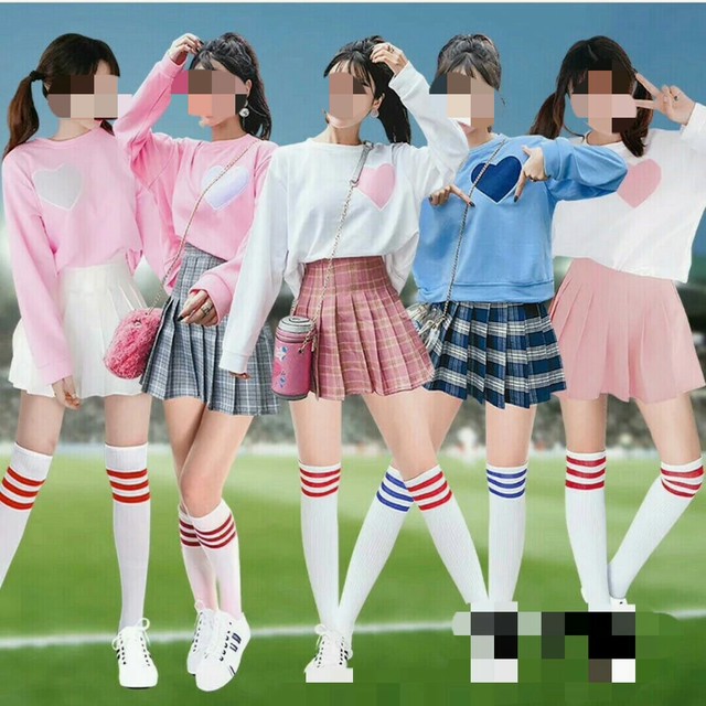 高马尾,JK短裙,白色衬衫,五人显露着瘦瘦的大长腿,身材比例简直完美