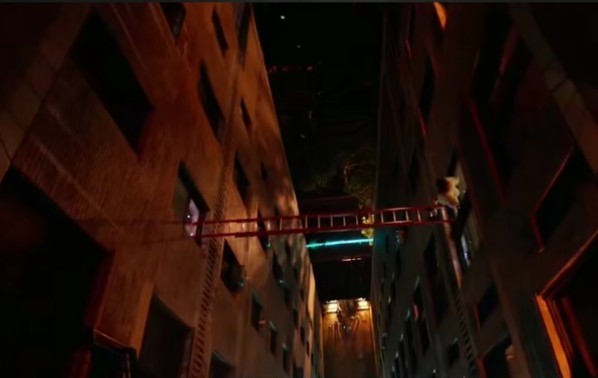 本来唱的好好的,突然屏幕上来了一条信息:第一个挑战,在十几楼的高空中,把梯子架在两栋楼中间,再用梯子走到另一栋楼,限时15分钟。