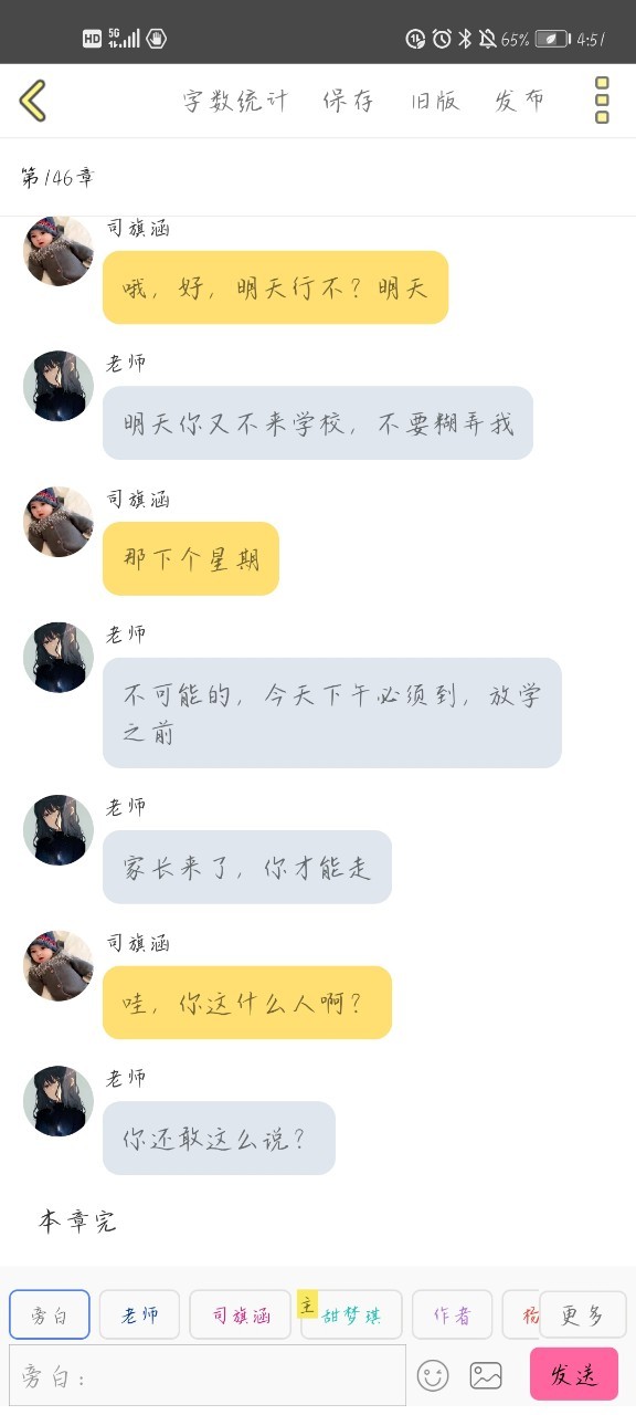 说完我们的小女主就走了,没错,霸气的走了,课都不上了的那种,但他也不是很霸气哈,现在怂的要死,还在想,等会要走了,把哥哥叫到学校里面,用什么样的借口?
