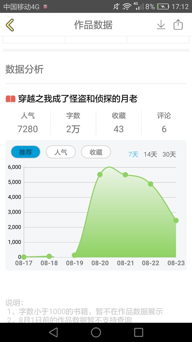 作者大大最近作品数据不太好,一直呈下滑趋势